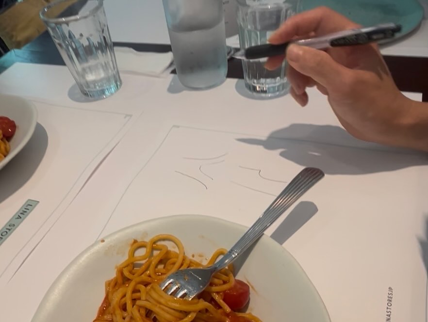 キノコが食材に入ってたらキノコの話題で盛り上がるし、木のスケッチ描く人もいたりして濃い〜テーブルです