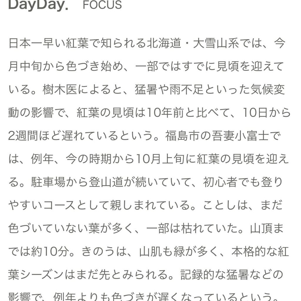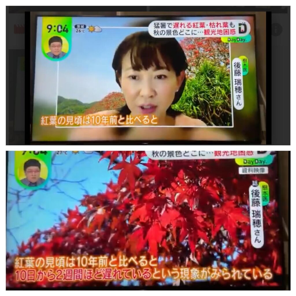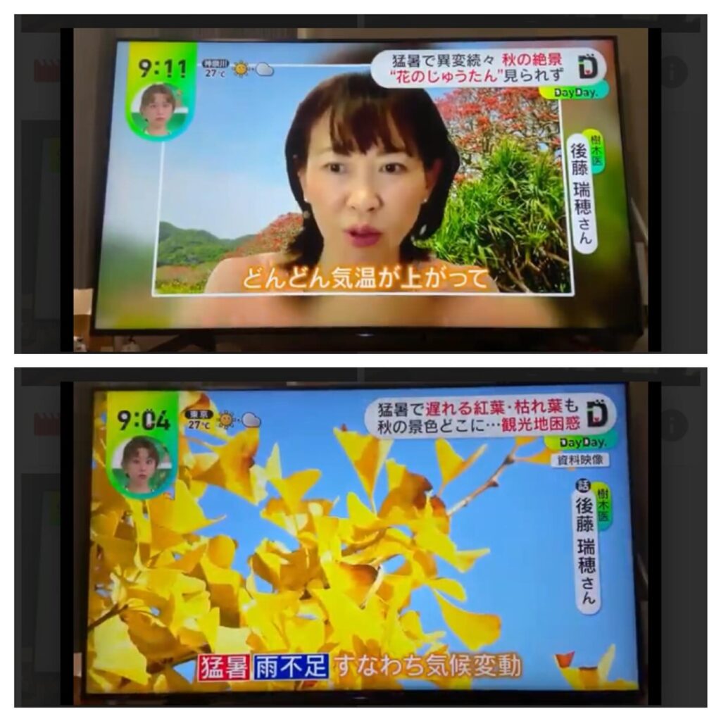 本日の日テレDay Day にて『猛暑で異変 遅れる紅葉・倒木の危険性』についてお話しいたしました。