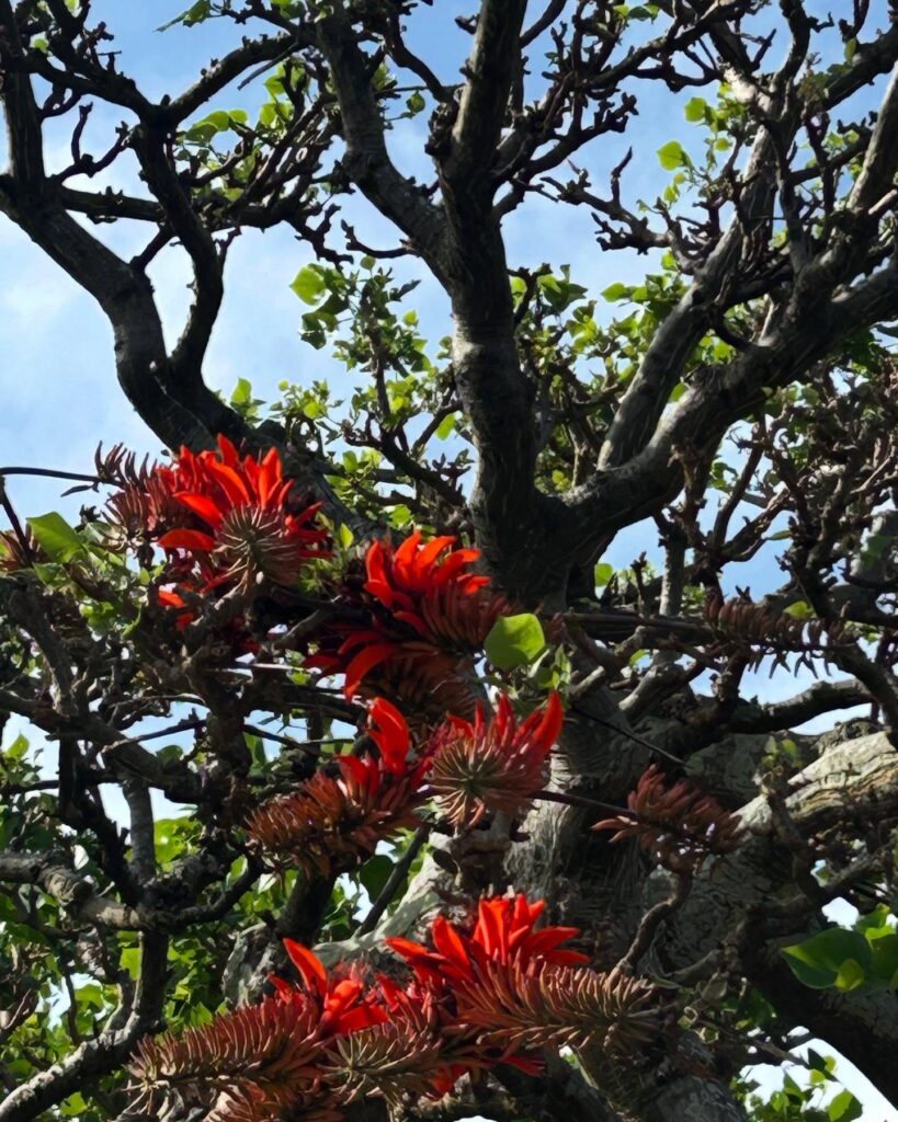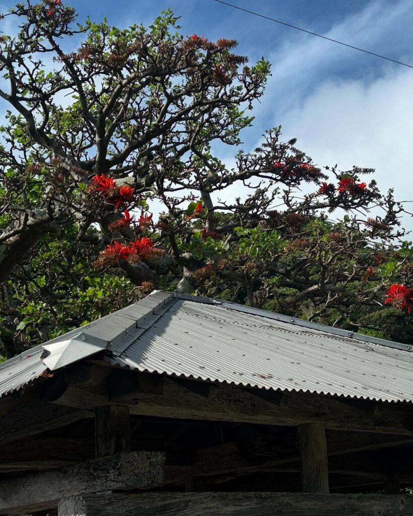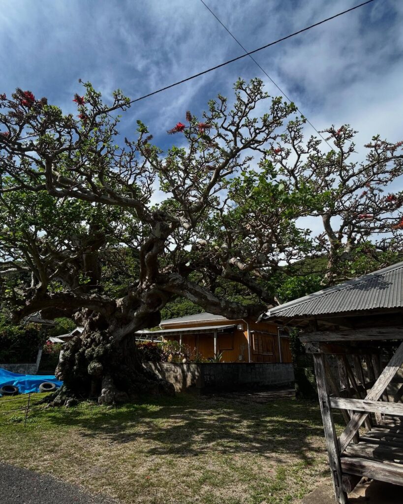 アシャゲと言う昔祭祀に使われていた文化財建物の隣に生育していて、とても立派です。推しデイゴの一つです。