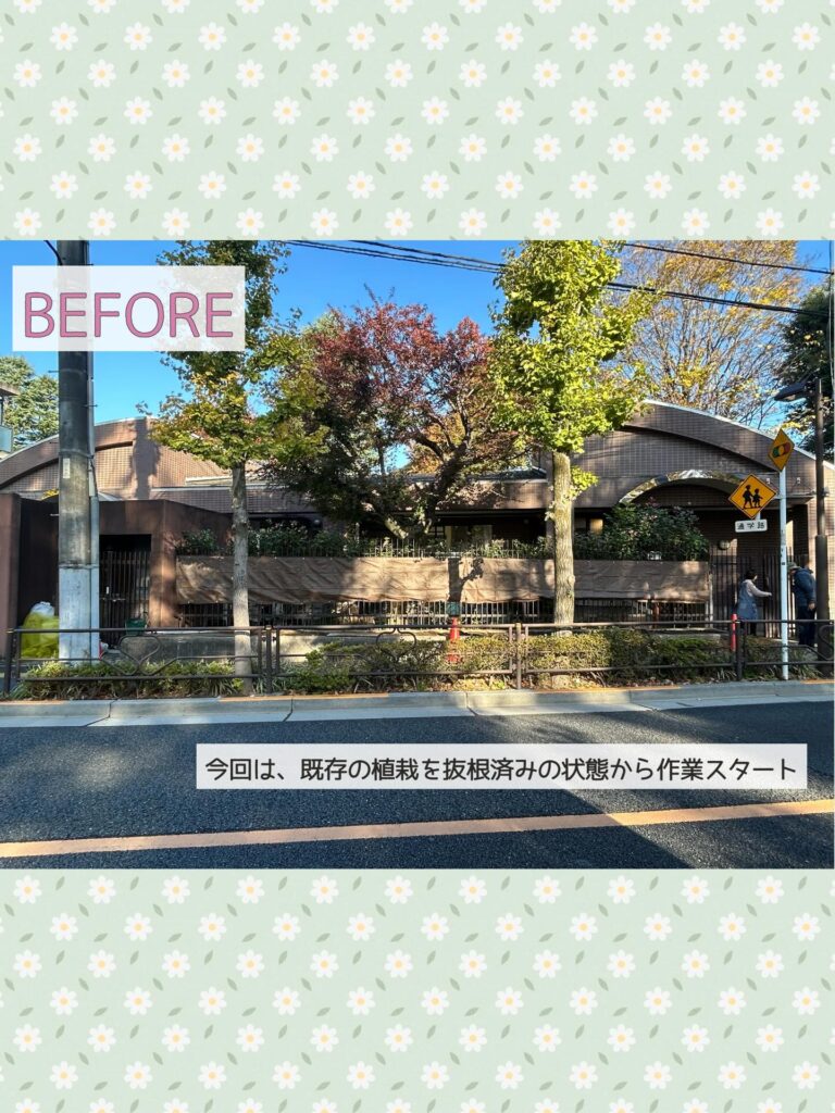 いずみナーサリーさまの敷地内の植栽工事を行いました。