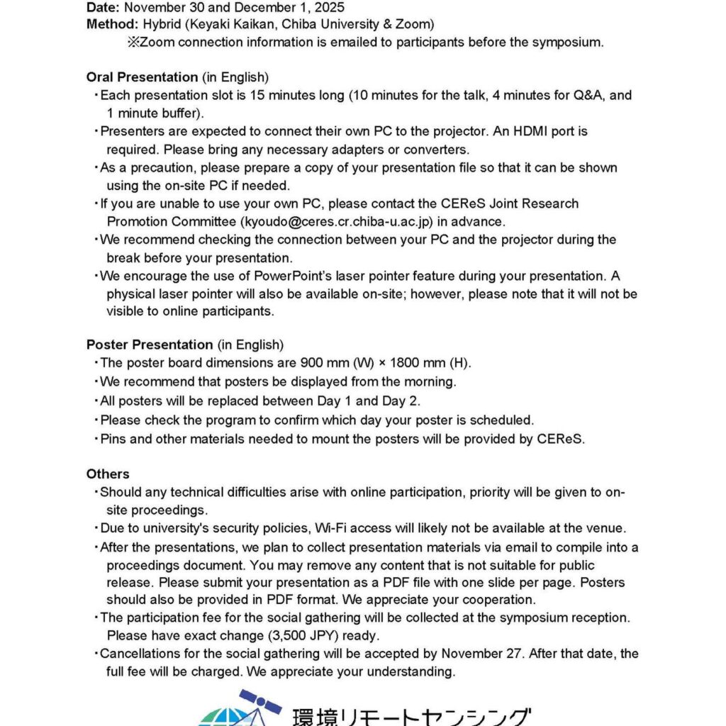 The 30th CEReS International Symposium &The 28th CEReS Environmental Remote Sensing Symposium にて、第4号日本樹木遺産のデイゴ並木についてポスター発表を行いました。
